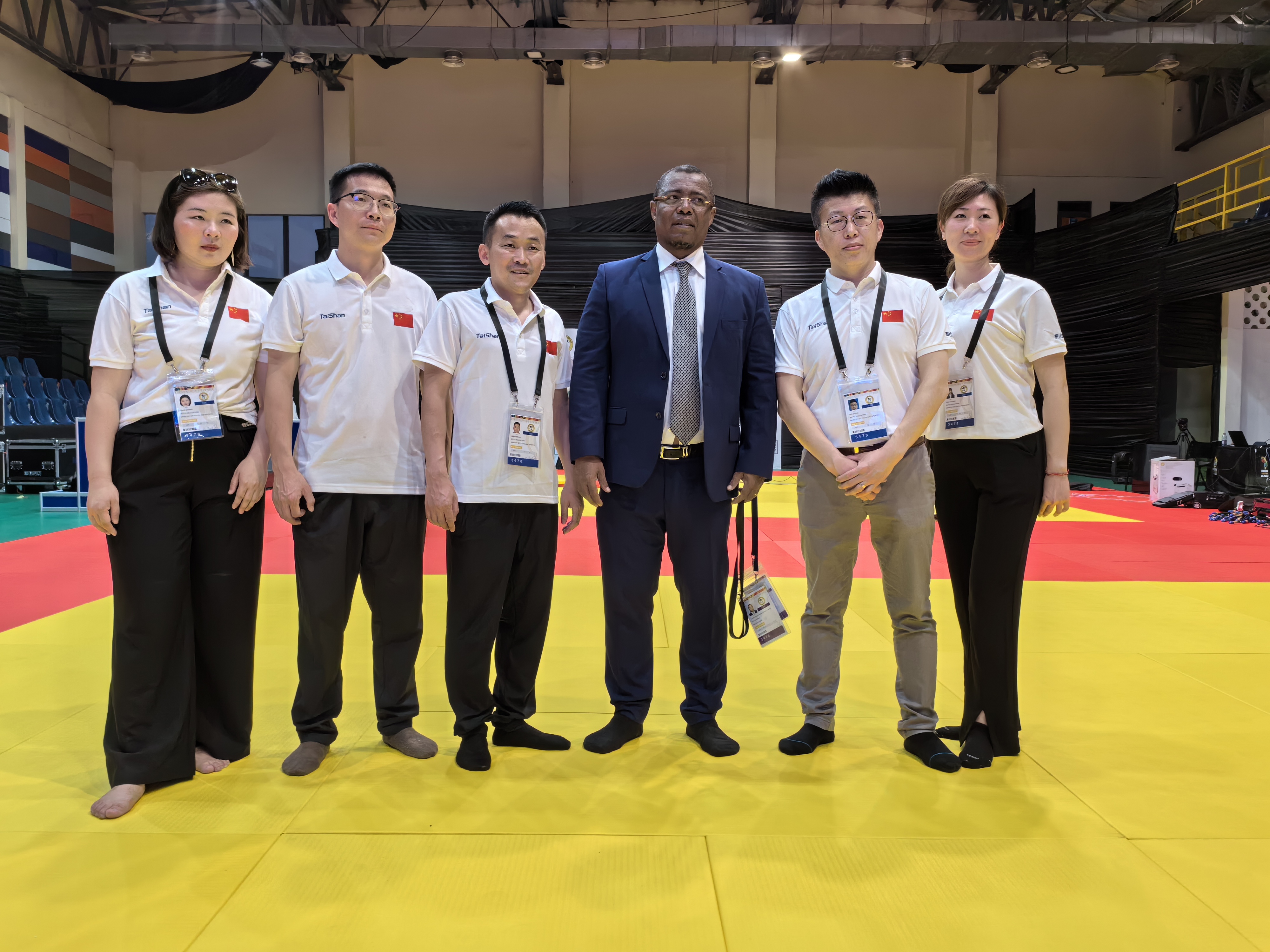 △ 乐鱼体育leyu体育保障团队与非洲柔道联盟主席Siteny Randrianasolo合影