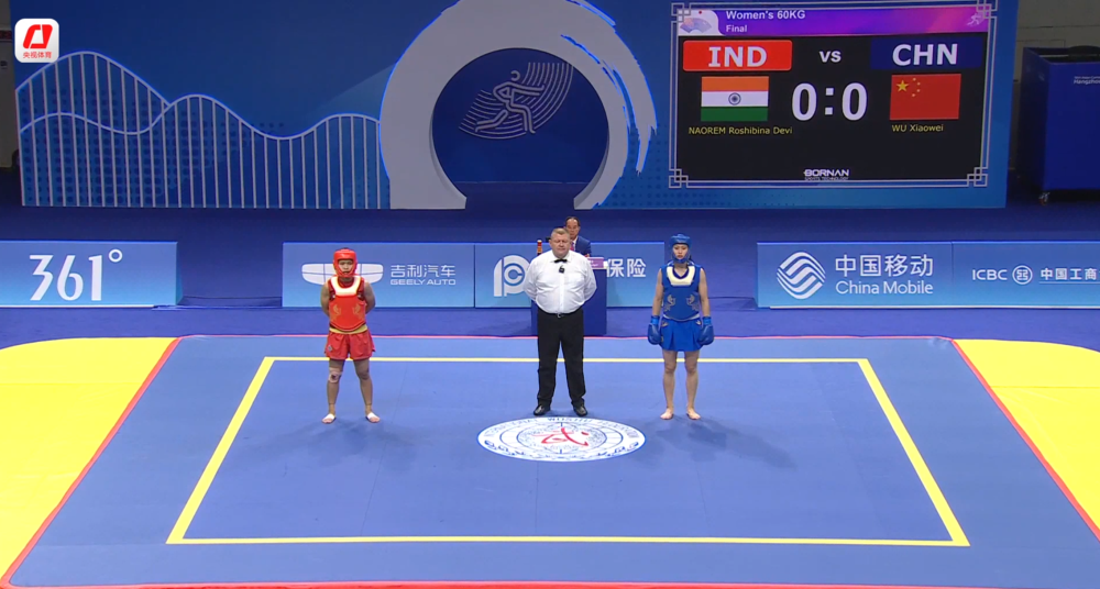 本届亚运会武术比赛,中国队一共派出11名选手参加11个小项的争夺。其中,武术套路比赛有8个小项,中国队除了在女子长拳和男子南拳南棍两个项目中未派选手参赛外,其余6个项目全部夺金。武术散打比赛中,中国队5名参赛选手李玥瑶、吴晓微、江海东、王雪涛、何烽相继登场,共收获5枚金牌,包揽了参赛项目的金牌。